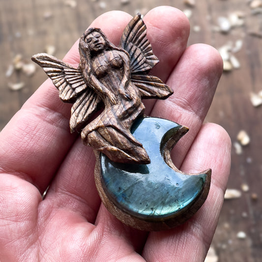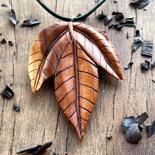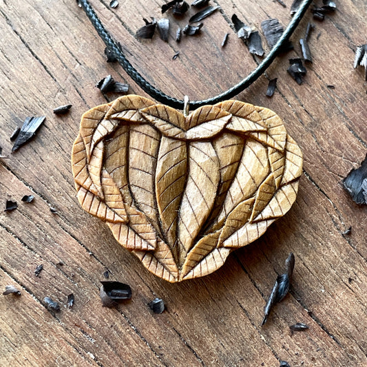 “Hands Squeezing Heart” Walnut Wood Pendant