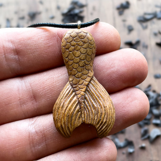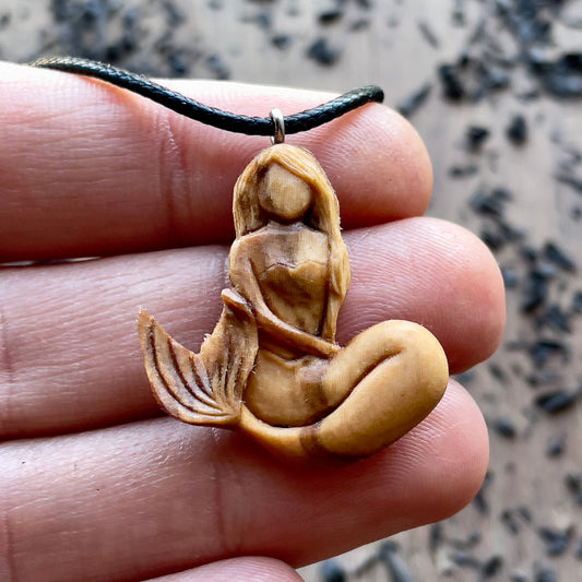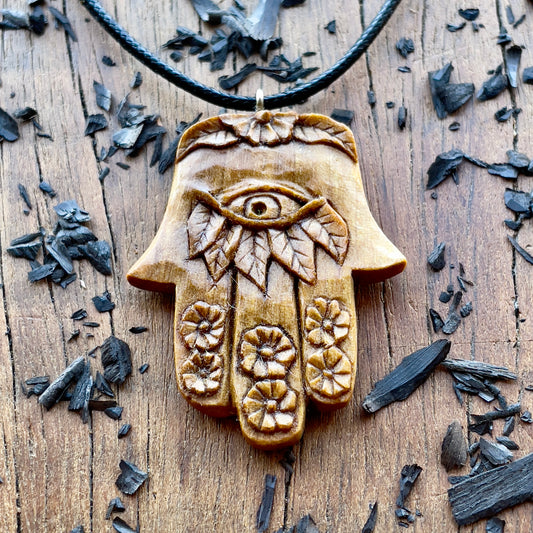 Pendente in legno di quercia e ciliegio con foglia d'edera
