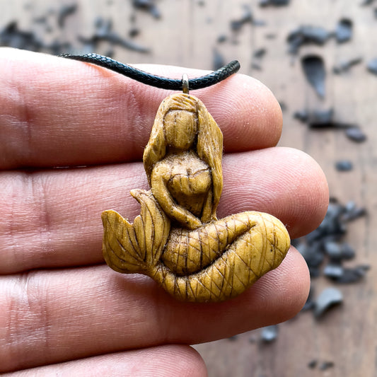 Ciondolo in legno di quercia con maschera tribale Tiki