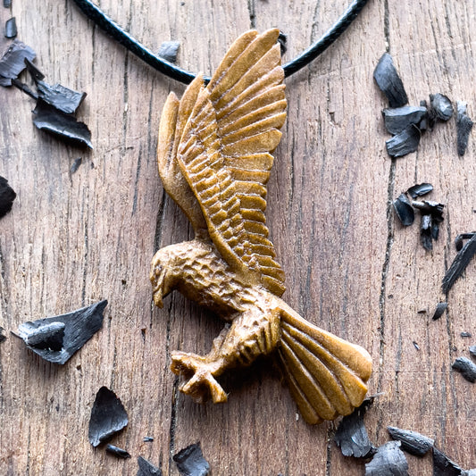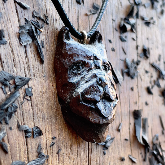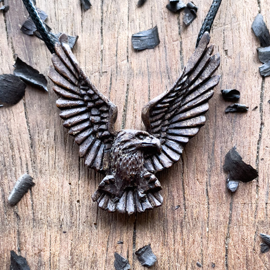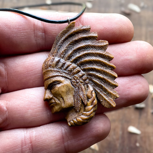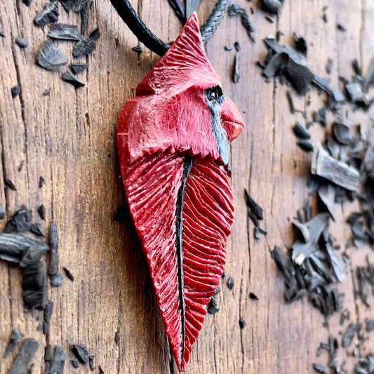 Ciondolo in legno di noce con testa di uccello cardinale e piuma