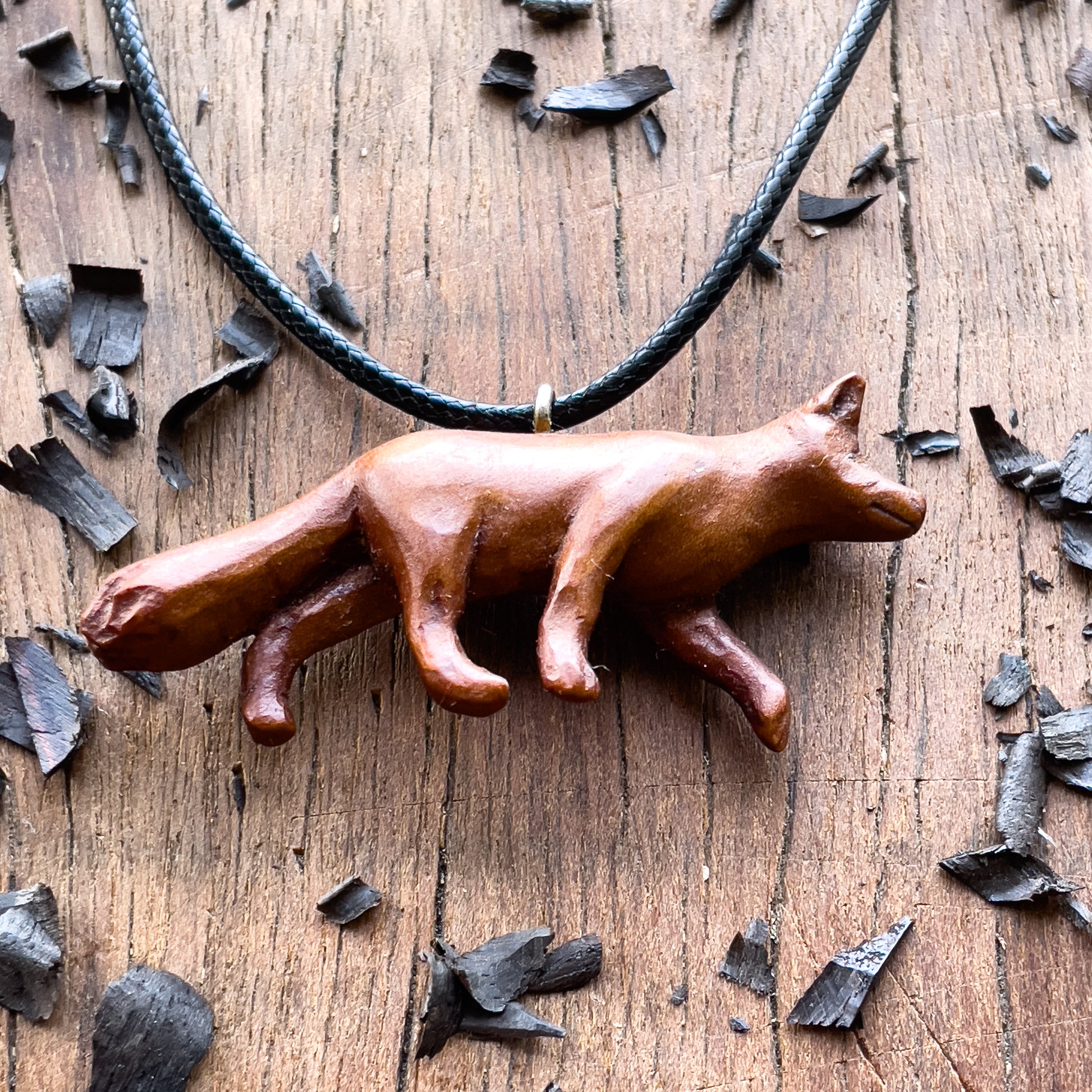 Collana volpe intagliata a mano, ciondolo in legno di albicocca