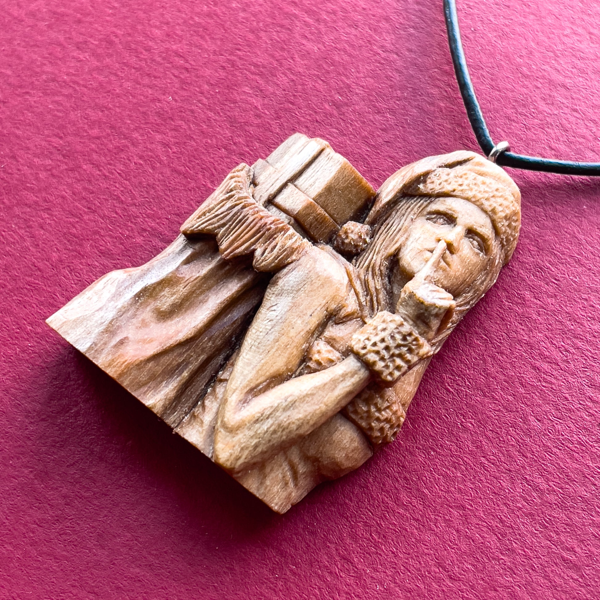 Perfezione artigianale : creo ogni intricato dettaglio di questo ciondolo con precisione, utilizzando solo coltelli e sgorbie, dando vita a un'opera d'arte indossabile che non ha eguali.