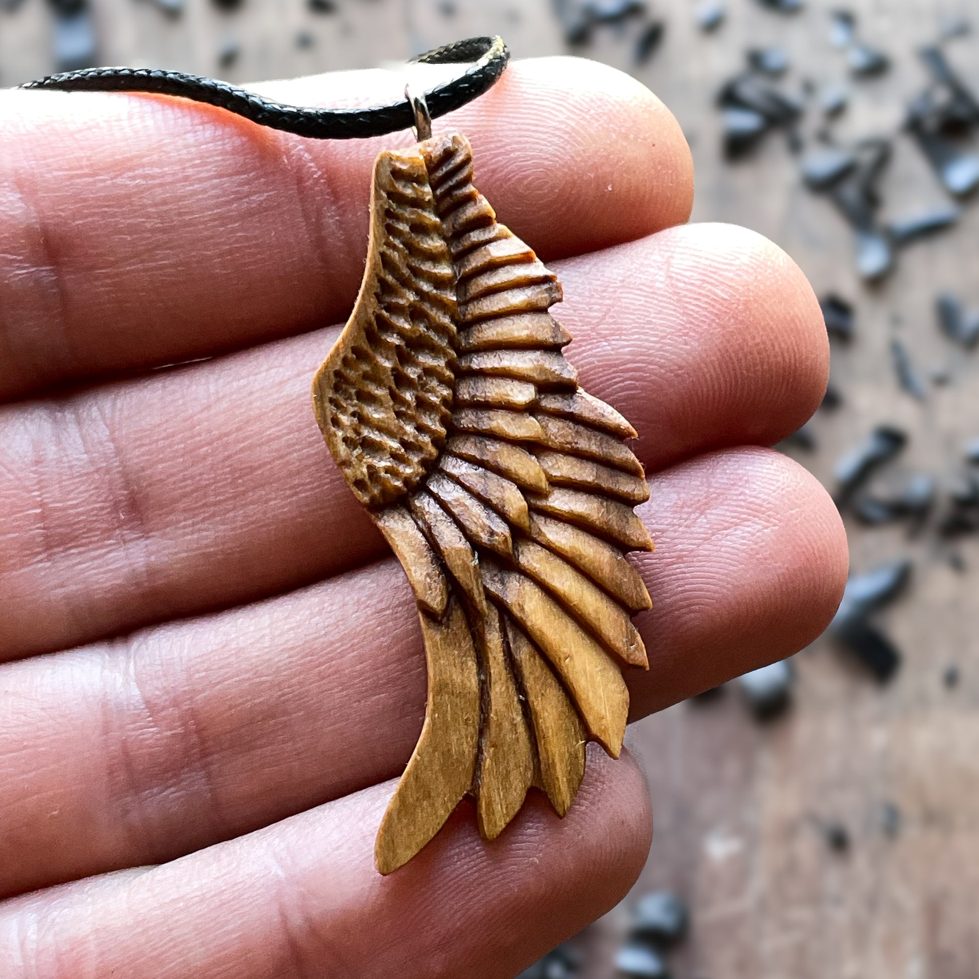 Carved from olive wood, this small wing carries the light weight of protection and the grace of something that doesn’t need to explain itself. Gentle lines flow naturally across its surface, evoking movement, purity, and a spirit that stays steady, even on windy days.