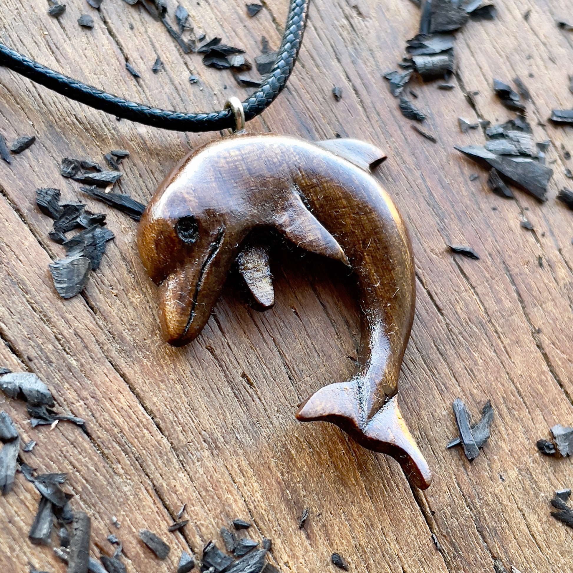 The dolphin has long been a symbol of joy, freedom, and protection for those who travel across the waters. This pendant captures that essence, a playful guardian of the ocean, carved in warm American walnut wood, to bring you luck and serenity wherever you go.