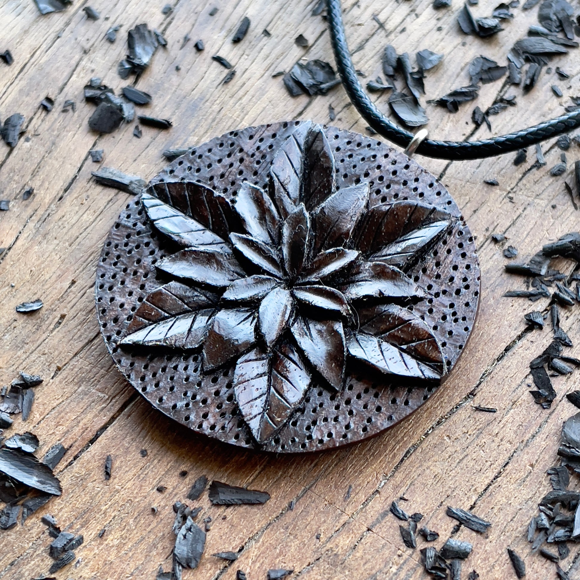 Handcrafting Perfection: I create every intricate detail of this pendant with precision using only knives and gouges, resulting in a wearable piece of art that's second to none.