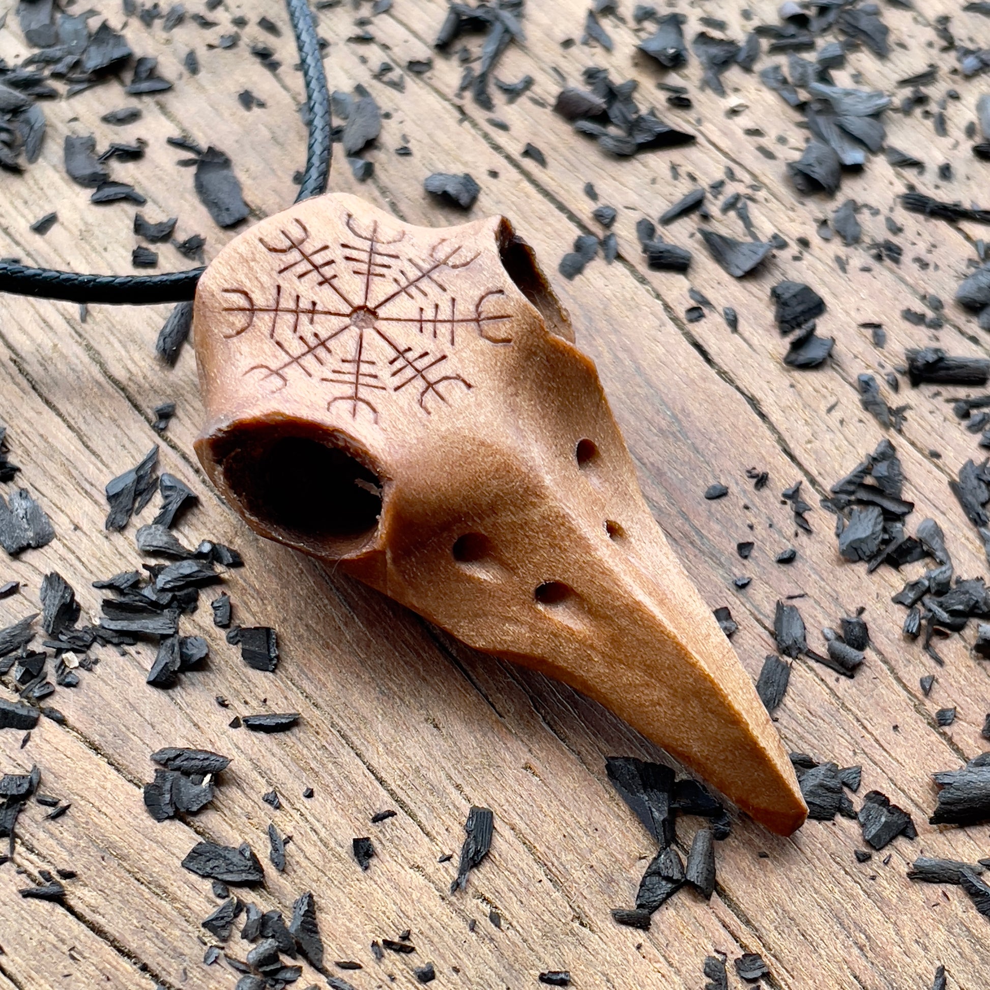 • Symbolic Design – Raven skull paired with a powerful Norse stave Helm of Awe.
