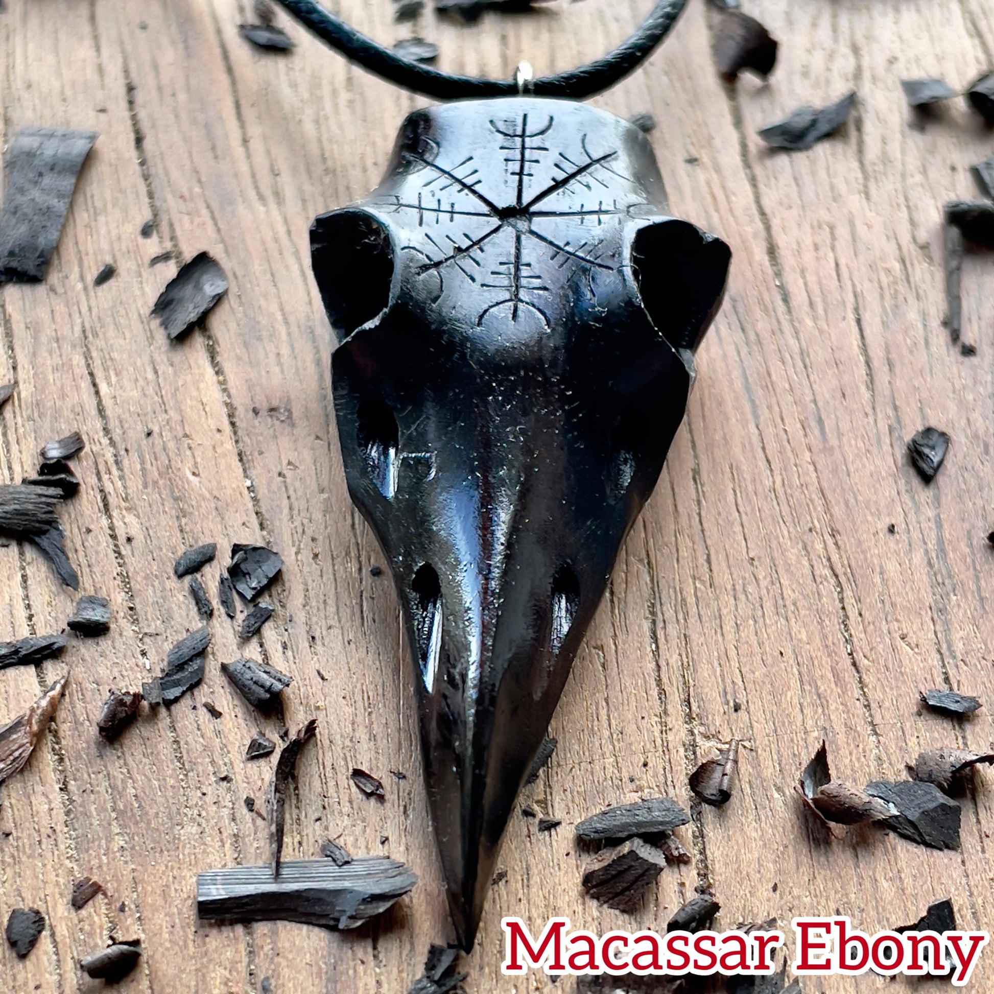 Raven Skull Helm Of Awe Ebony Wood Pendant