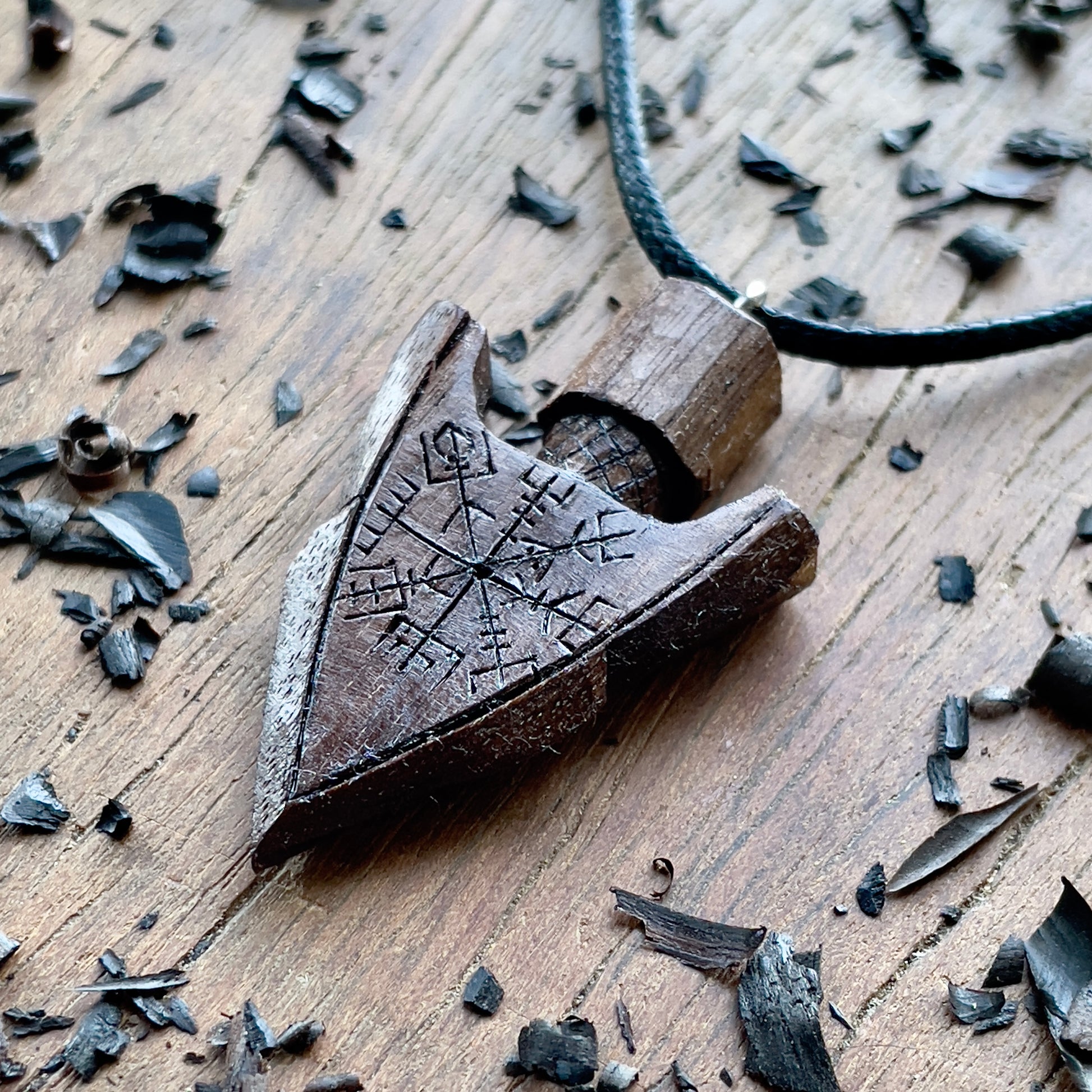 Together, these symbols create a pendant that represents direction, protection, and connection to ancient Norse beliefs. A simple form carrying layered meaning.